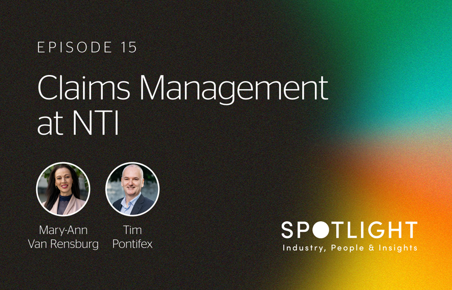 In this episode of the NTI Spotlight podcast, we speak with Head of Claims Operations Mary-Ann Van Rensburg and Head of Claims Services Tim Pontifex about what makes NTI’s claims response so unique – both at the time of an accident and through the process of managing complex claims.